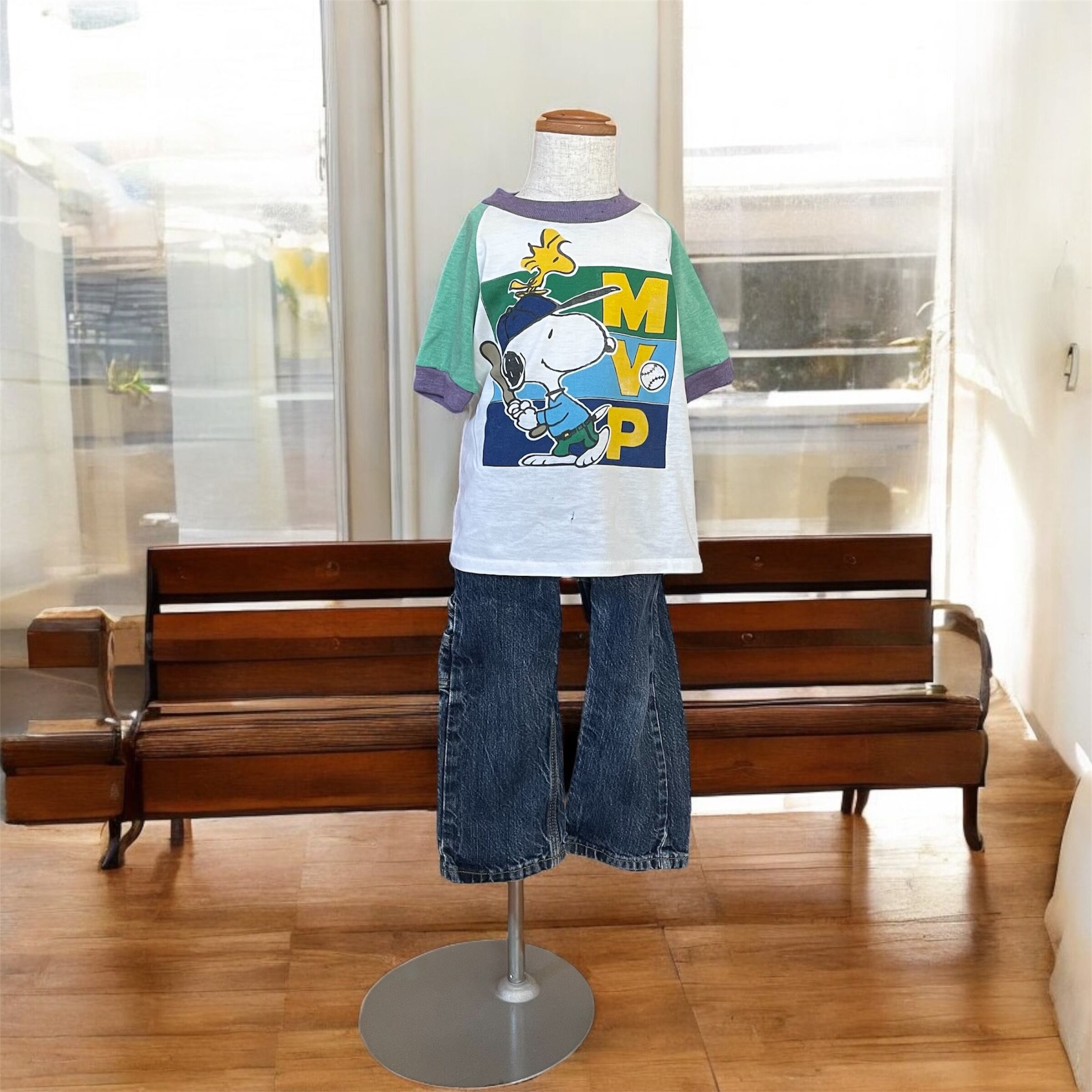 Size M5-6 キッズ made in USA アメリカ製 SNOOPY VINTAGE ヴィンテージTシャツ ラグランTシャツ シングルステッチ