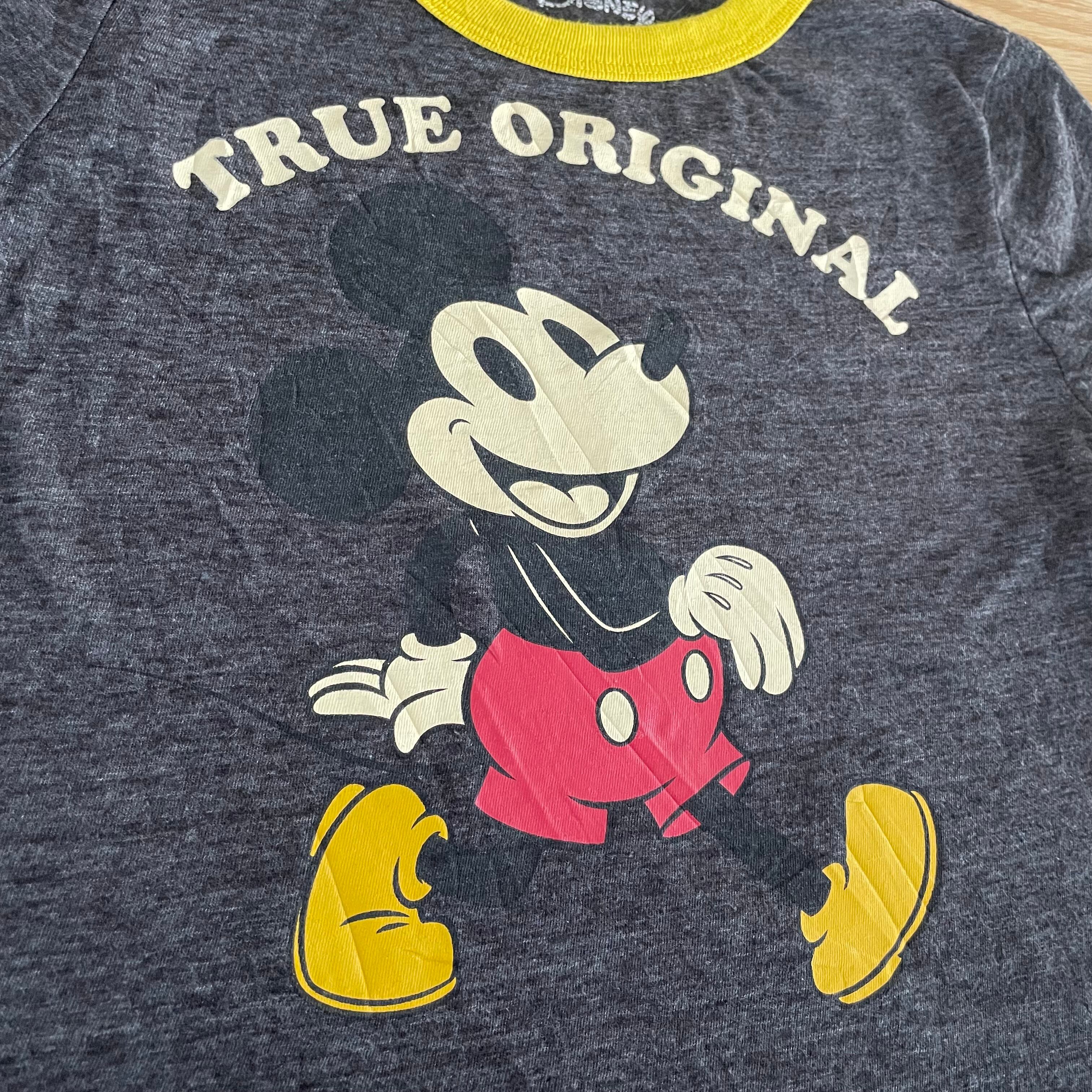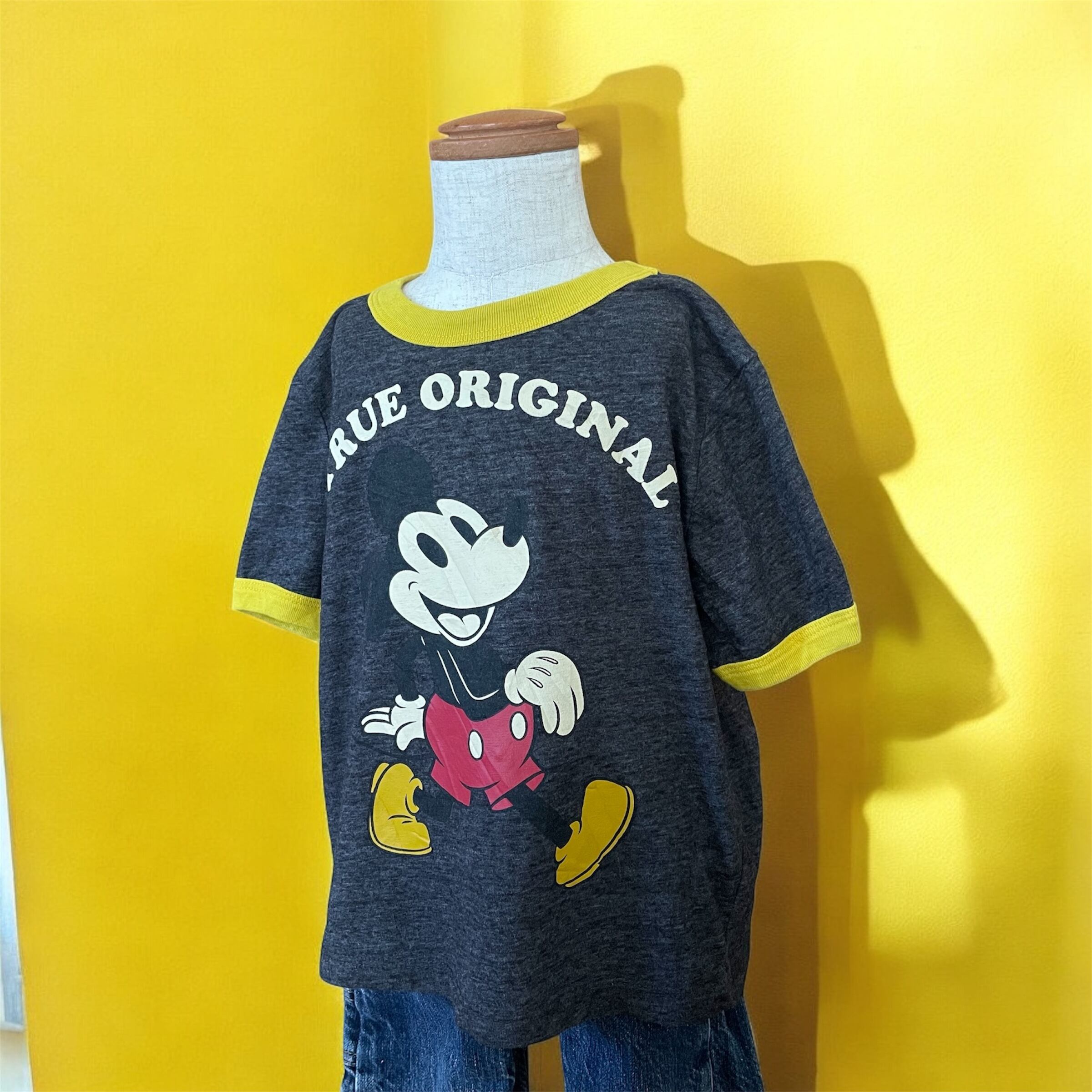 クラシックなミッキーのプリントが可愛い、ヴィンテージテイストのTシャツです。