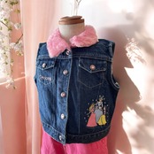 ピンクのファーにキラキラボタン、プリンセスの刺繍が可愛いベストです。