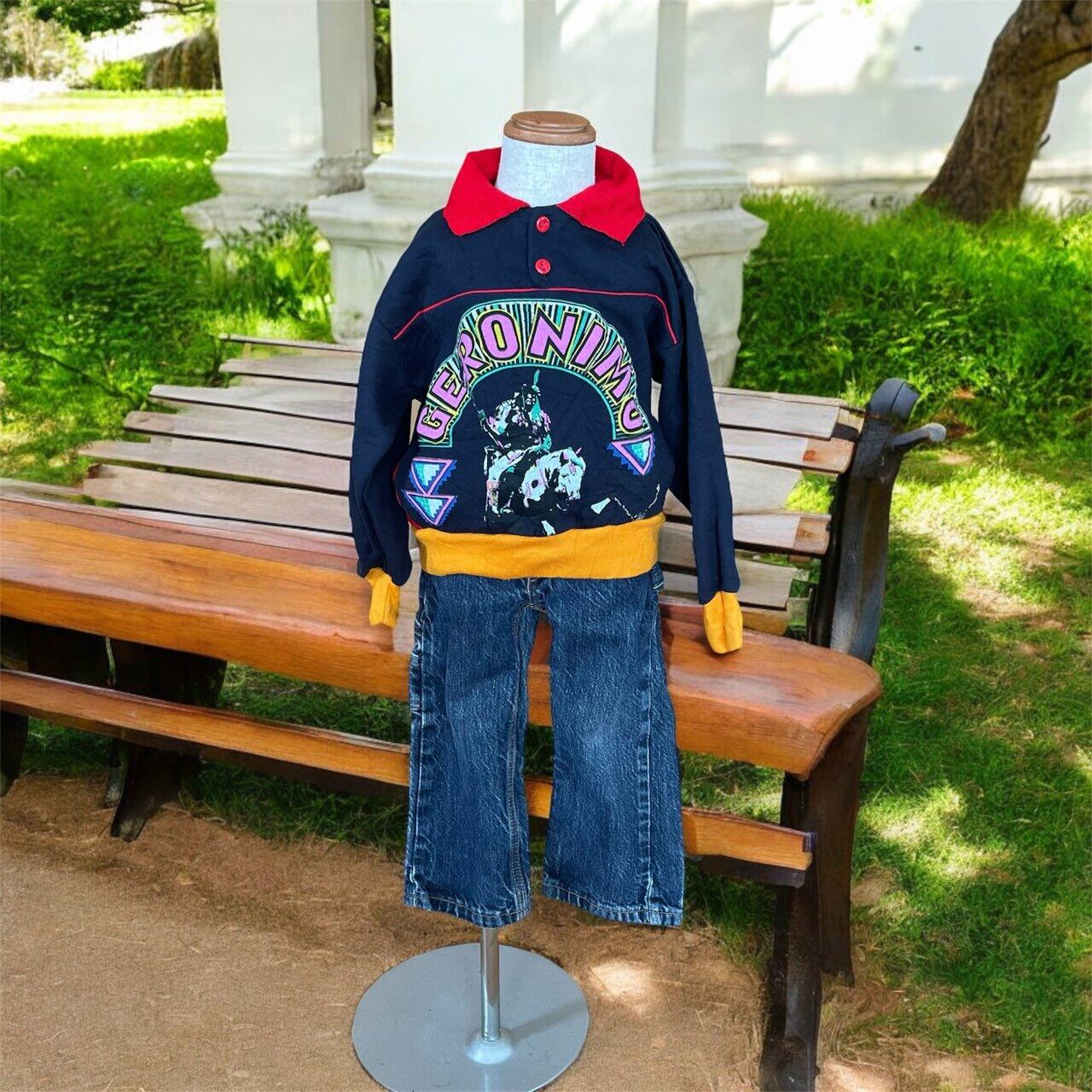 フランス製 ヴィンテージ ベビー キッズ スウェット 襟付き ロンT カラフル